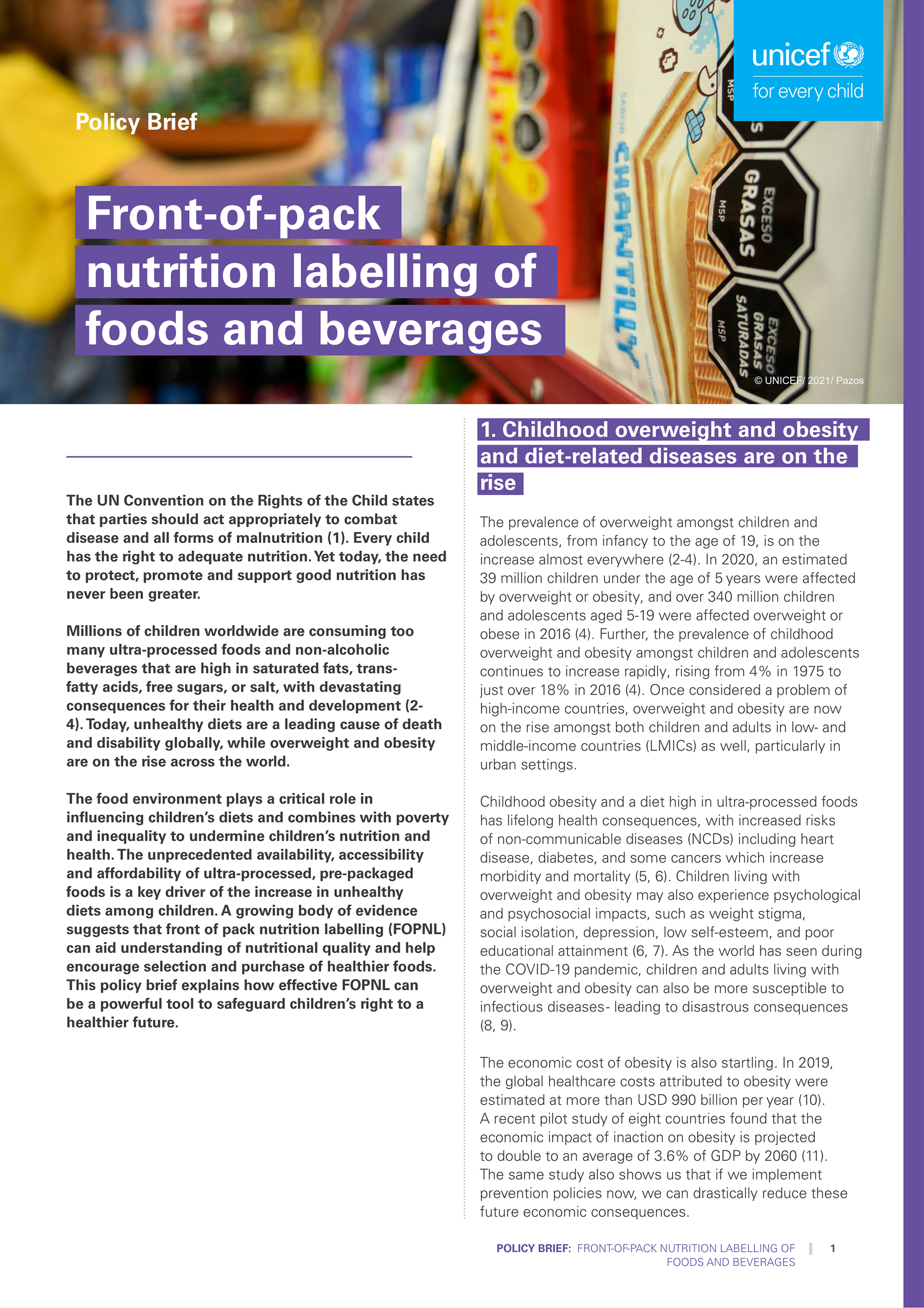 Policy Brief: Front-of-pack nutrition labelling of foods and beverages